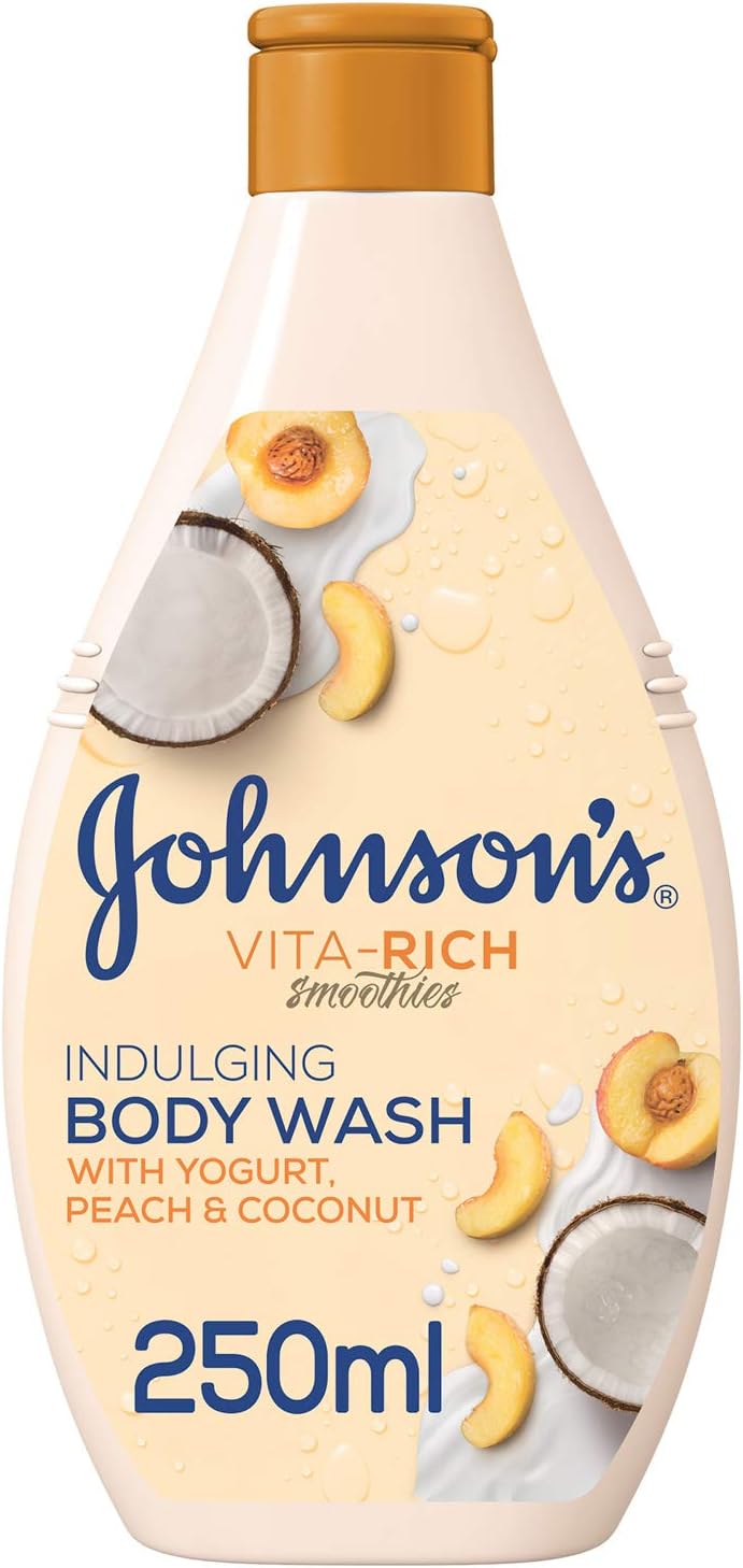 جونسون غسول الجسم اندلجينج من فيتا ريتش هو غسول جسم فاخر ولطيف يوفر لبشرتك الجافة ترطيبًا يدوم طويلاً. غني بمركز الزبادي والخوخ وجوز الهند، غسول الجسم جونسون Vita-Rich Indulging يغذي البشرة الجافة ويجعلها رطبة لمدة 24 ساعة. غسول الجسم اندولجينج فيتا ريتش من جونسون خفيف الوزن وغير دهني، وغني برائحة حلوة ومثيرة تجعل بشرتك ناعمة كالحرير والحيوية بشكل جميل. للحصول على بشرة ذات رائحة جميلة وصحية تشعرك بالراحة طوال اليوم، استخدمي غسول الجسم فيتا ريتش من جونسون