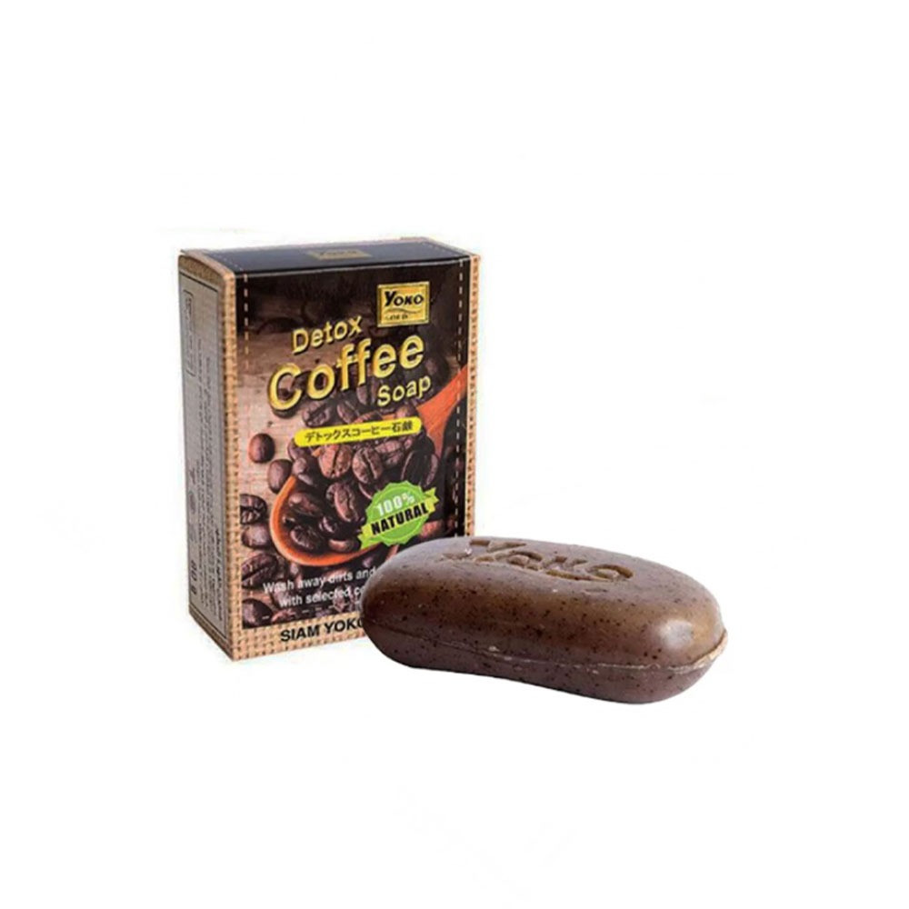 صابون القهوة للتخلص من السموم من يوكو هو مقشر لطيف طبيعي يعمل على زيادة الدورة الدموية بشكل معتدل لتحسين لون البشرة وصحتها