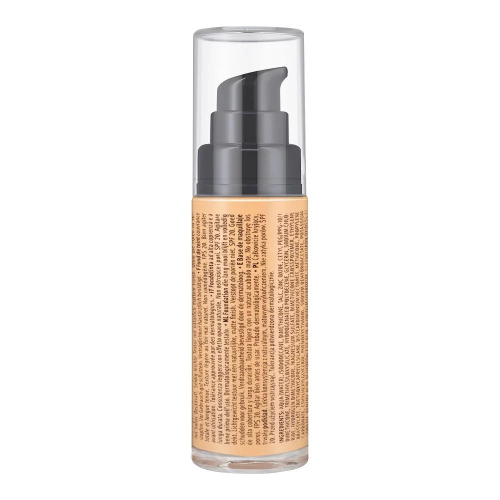 هو كريم أساس سائل بتركيبة مطفية (Matte) وتغطية كاملة، مثالي للبشرة المتوسطة إلى السمراء. يتميز بقوام خفيف يسهل دمجه، يدوم طويلاً، ويحتوي على عامل حماية SPF 20، مما يمنحك مظهراً طبيعياً وخالياً من العيوب دون تكتل، بسعر اقتصادي
