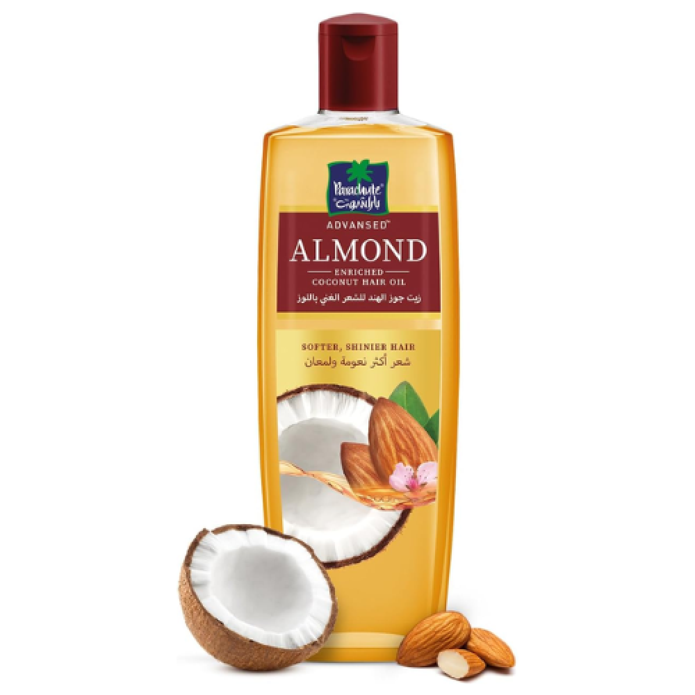 يجمع زيت الشعر باراشوت بين التغذية الطبيعية لزيت جوز الهند واللوز لشعر أكثر نعومة ولمعان