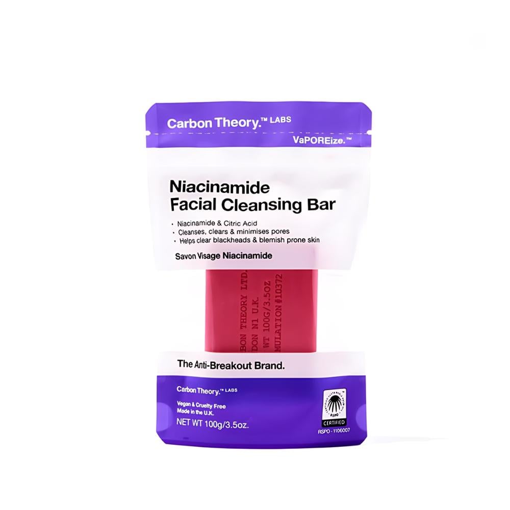 منظف الوجه بالنياسيناميد من كاربون ثيوري هو صابونة تنظيف مصممة لتنظيف البشرة بعمق وتفتيحها. يحتوي على النياسيناميد، وهو شكل من أشكال فيتامين B3، الذي يساعد على تقليل ظهور المسام، وتحسين ملمس البشرة، وتفتيح البقع الداكنة [1، 3]. كما أنه يحتوي على الفحم المنشط وزيت شجرة الشاي، وهما مكونان يعملان على إزالة الشوائب والبكتيريا والزيوت الزائدة من البشرة.