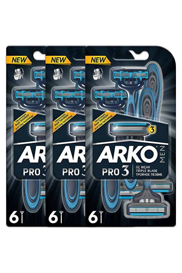 شفرات أركو برو 3 تتميز بثلاث شفرات حادة توفر حلاقة ناعمة وفعالة دون تهيج البشرة.