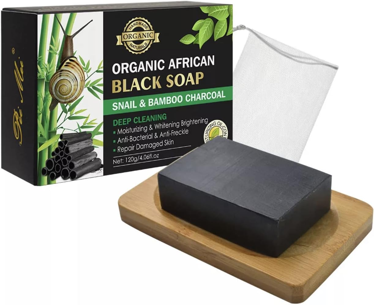 صابون باي مي العضوي الافريقي بالحلزون وفحم الخيزران الاسود ينظف المسام بعمق ويمتص الشحوم والاوساخ وبقايا المكياج. يوفر الصابون الخفيف والمنعش الرغوة الرقيقة والكثيفة. يصلح البشرة التالفة ويقلل التجاعيد. يمنع بشكل فعال حب الشباب والكوميدونات ويحمي البشرة. يترك البشرة مشرقة ومرطبة وخالية من التوتر.