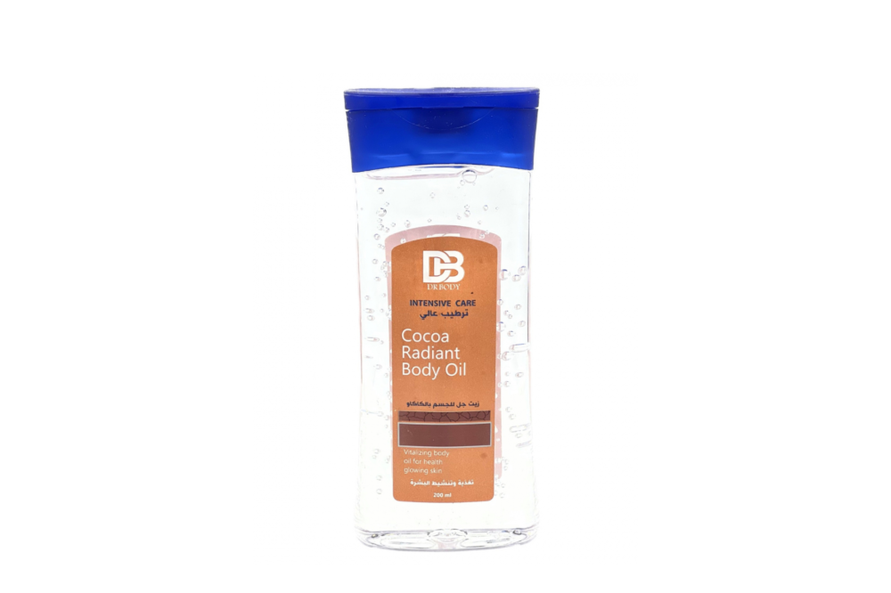 زيت جل الجسم بزبدة الكاكاو من دكتور بودي (200 جرام) هو منتج للعناية بالبشرة يهدف إلى ترطيب وتغذية الجسم. يتميز بتركيبته الخفيفة وغير الدهنية التي تمتصها البشرة بسرعة، مما يجعلها ناعمة ولامعة. يحتوي على زبدة الكاكاو النقية والزيوت المجددة التي تساعد على ترطيب البشرة الجافة والباهتة، مما يمنحها مظهرًا صحيًا ومتوهجًا.