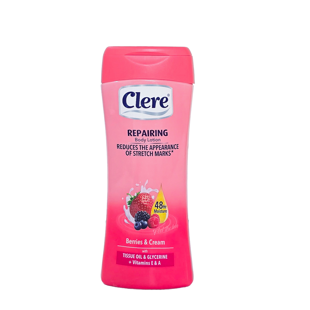 لوشن الجسم من كلير بالتوت والقشطة بحجم 400 مل يتميز بتركيبة مغذية غنية بالمواد المرطبة التي تساعد على ترطيب وتلطيف البشرة لمدة 48 ساعة. يمتص بسرعة ولا يترك ملمسًا دهنيًا، مما يمنح البشرة ملمسًا ناعمًا وناعمًا. كما يتميز برائحة التوت المنعشة التي تدوم طويلاً.