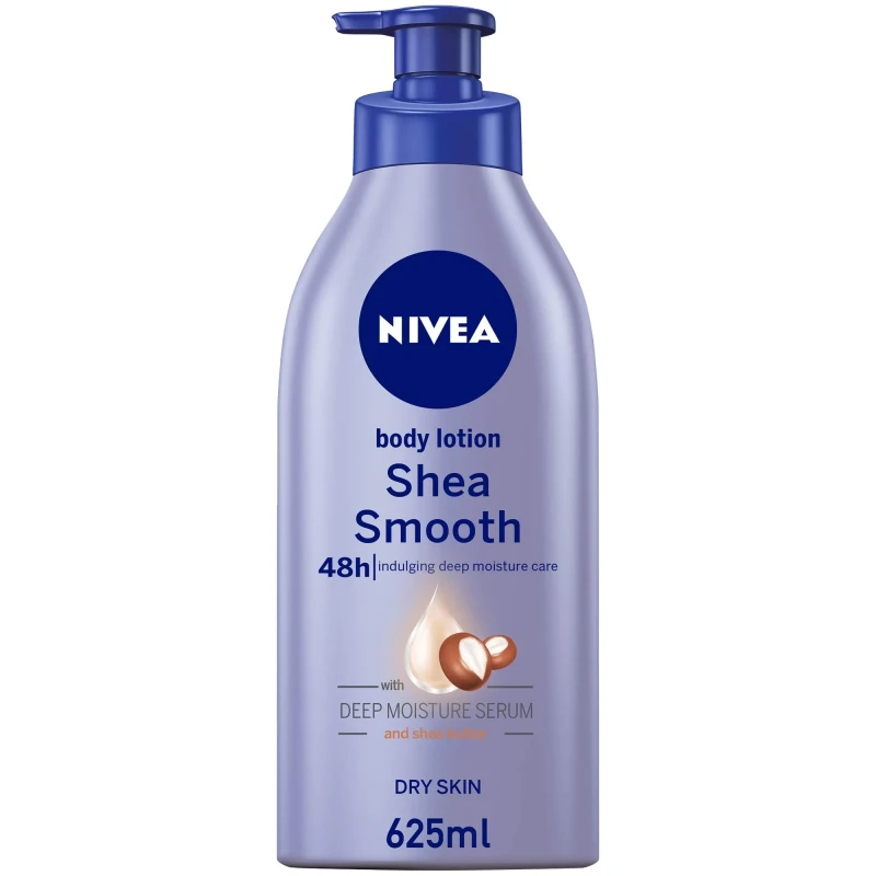 نيفيا لوشن للجسم بزبدة الشيا 625مل هو مرطب للجسم يحتوي على زبدة الشيا الغنية بالدهون والفيتامينات المفيدة التي تساعد على ترطيب البشرة الجافة والخشنة.