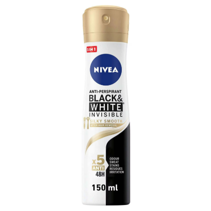 مميزات نيفيا بلاك اند وايت انفيزيبل سيلكي سموث بخاخ مزيل العرق للنساء 150مل: