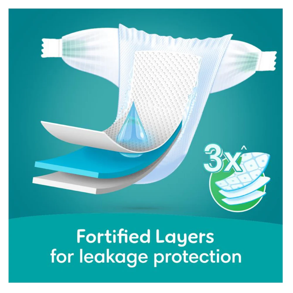 تتميز بقدرة امتصاص عالية تساعد على إبقاء الطفل جافًا لفترة أطول، مع تصميم مريح يسمح بحرية الحركة. الصندوق الضخم بعدد 100 قطعة خيار عملي للاستخدام اليومي طويل المدى.