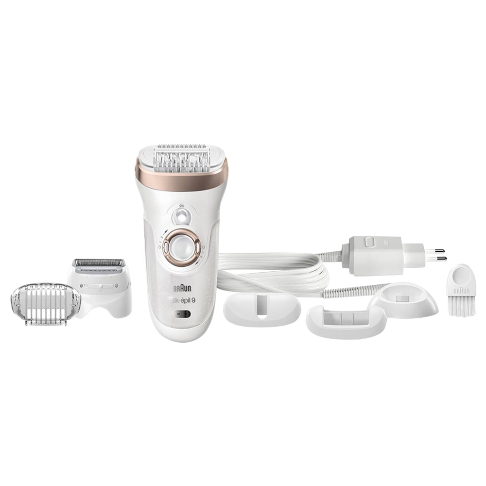 محتويات مجموعة ماكينة حلاقة براون نسائية للجسم والوجة Braun SE 9561 Wet&Dry Cordless Epilator : ماكينة حلاقة راس لحلاقة شعر الوجة اربع رؤوس مختلفة للماكينة لملائمة افضل لكامل شعر الجسم مقبس كهربائي بسلك طويل مميزات ماكينة حلاقة براون SE 9561 Wet&Dry Cordless Epilator : اطار بلاستيكي متين للغاية يضمن تحمل افضل للحركة السريعة والاهتزاز تتم ازالة الشعر بواسطة ملاقط ميكروية لازالة الشعر من طول 0.5 ملم راس بلاستيكي مرتفع للاماكن الحساسة كمنطقة البكيني راس بعرض اضافي بنسبة 40% لاستفادة اكبر من الماكينة راس مخصص للشعر الناعم كشعر الوجة رؤوس سيلكونية تدور مع راس الحلاقة لتهداة البشرة ثلاث رؤوس بفتحات متفاوتة تتوافق مع مناطق مختلفة من الجسم امكانية استخدام ماكينة حلاقة شعر الجسم في الحالتين الرطبة او الجافة