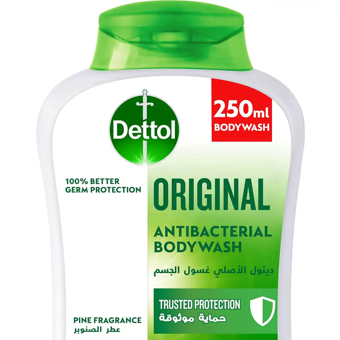 دع همومك وراءك مع حمام منعش مفعم بافضل جل للاستحمام. ديتول اوريجينال (الاصلي) غسول الجسم وجل الاستحمام يضمن الحفاظ على صحتك دائمًا من خلال منحك حماية افضل من الجراثيم بنسبة 100٪ مقارنة بالمنتجات الغير مضادة للبكتيريا ، عندما تم اختباره ضد البكتيريا. يجمع غسول الجسم بين الحماية الموثوقة من الجراثيم من ديتول ورائحة الصنوبر لحماية بشرتك ومساعدتك ايضا على الاسترخاء. يحافظ ديتول جل الاستحمام على درجة حموضة بشرتك مما يجعل البشرة تشعر بالصحة والنعومة. جل الاستحمام المضاد للبكتيريا يوفر لك الحماية الموثوقة للبشرة كما انه خالي من التراي كلو كاربان والتراي كلوسان للحفاظ على صحة اسرتك ونظافتها. تم اختبار هذا المنتج من قبل اطباء الجلدية.