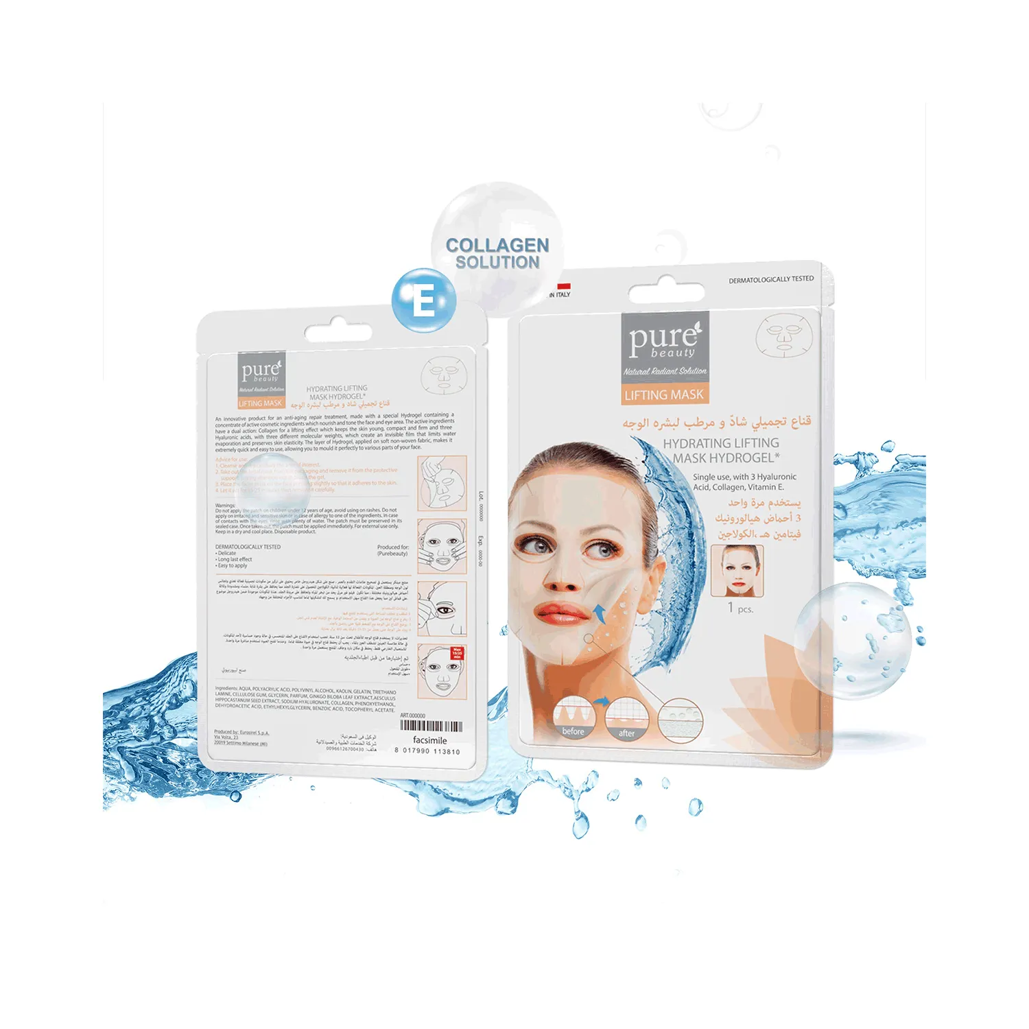 بيور بيوتي قناع تجميلي شاد ومرطب لبشرة الوجه بتقنية الهيدروجل قناع تجميلي مبتكر بتقنية الهيدروجل لتصحيح علامات التقدم في العمر. يحتوي على الكولاجين الذي يأمن الحصول على بشرة نضرة مما يجعلها ناعمة شأبة ومشدودة.تحتوي على ثلاث أحماض الهيالورنيك التي تحافظ على نضارة وحيوية البشرة. تقنية الهيدروجل تغذي وتجانس لون الوجه ومنطقة العين.