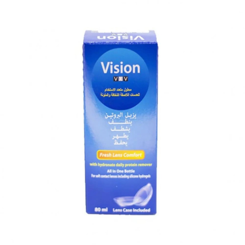 محلول فيجن متعدد الاستخدام هو محلول مصمم لتنظيف وتعقيم وتخزين جميع أنواع العدسات اللاصقة. يحافظ على رطوبة العدسات ويحميها من الأوساخ والجفاف، مما يجعلها مريحة للارتداء لفترة أطول. يعتبر مناسبًا للعدسات الطبية والشفافة والملونة.