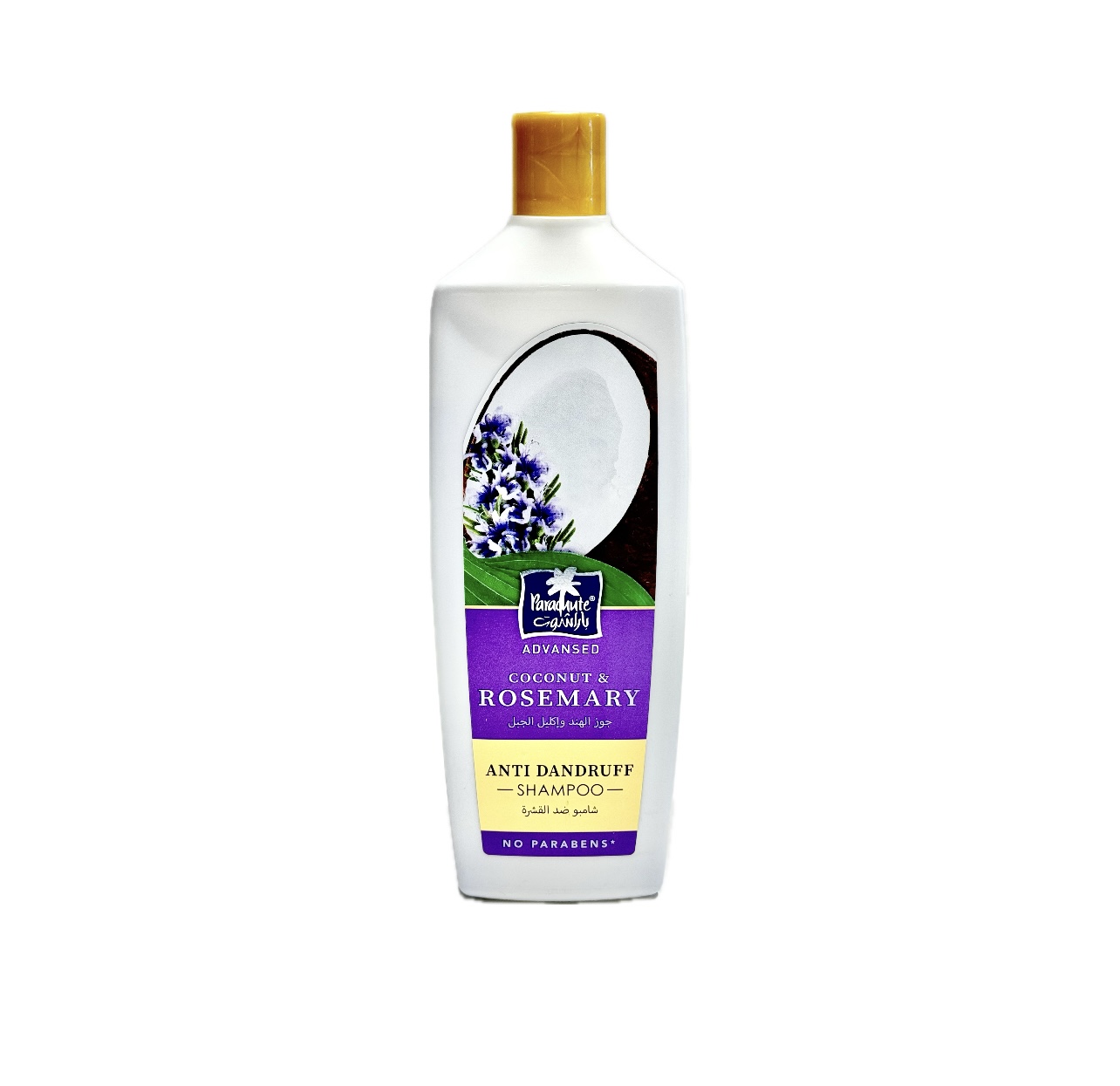 باراشوت شامبو جوز الهند واكليل الجبل ضد القشرة يقوم بتنظيف الشعر بلطف دون ضرره، غني بجوز الهند الذي يوفر تغذية أساسية وترطيب عميق يزيد من قوة ومرونة الشعر، ويحتوي على إكليل الجبل المعروف بخصائصه المنقية لفروة الرأس من خلال إزالة السموم والشوائب وتقليل قشرة الرأس فيزيد من حيوية وصحة الشعر.