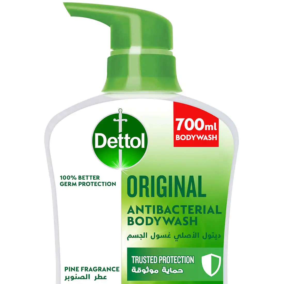 دع همومك وراءك مع حمام منعش مفعم بافضل جل للاستحمام. ديتول اوريجينال (الاصلي) غسول الجسم وجل الاستحمام يضمن الحفاظ على صحتك دائمًا من خلال منحك حماية افضل من الجراثيم بنسبة 100٪ مقارنة بالمنتجات الغير مضادة للبكتيريا ، عندما تم اختباره ضد البكتيريا. يجمع غسول الجسم بين الحماية الموثوقة من الجراثيم من ديتول ورائحة الصنوبر لحماية بشرتك ومساعدتك ايضا على الاسترخاء. يحافظ ديتول جل الاستحمام على درجة حموضة بشرتك مما يجعل البشرة تشعر بالصحة والنعومة. جل الاستحمام المضاد للبكتيريا يوفر لك الحماية الموثوقة للبشرة كما انه خالي من التراي كلو كاربان والتراي كلوسان للحفاظ على صحة اسرتك ونظافتها. تم اختبار هذا المنتج من قبل اطباء الجلدية.