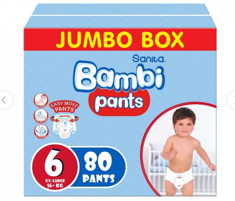 إن سانيتا بامبي بانتس مصمم خصيصاً بخصر مرن لينسجم مع نشاط طفلك وحركته. يتميّز سانيتا بامبي بانتس أيضاً بجوانب سريعة المزق لتغيير أسهل للحفاض وتخلّص عملي. بفضل حشوته الفائقة الإمتصاص، يحبس سانيتا بامبي بانتس البلل ليبقي بشرة طفلك جافة وصحيّة.
