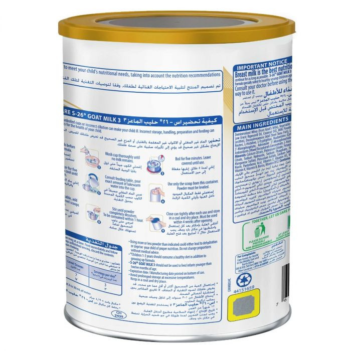 حليب الأطفال ألتيما 3 من أس 26 يحتوي على بروتين متحلل لتلبية احتياجات طفلك المتغيرة خلال مراحل نموّه. , , للمواليد الذين لديهم تاريخ عائلي في الحساسية من حليب البقر ومن المتوقع تطوّر هذه الحساسية لديهم. لا يستخدم كعلاج للرضع الذين لديهم حساسية من بروتين حليب البقر. غير مخصص للاستخدام في حالة الجالاكتوز في الدم.