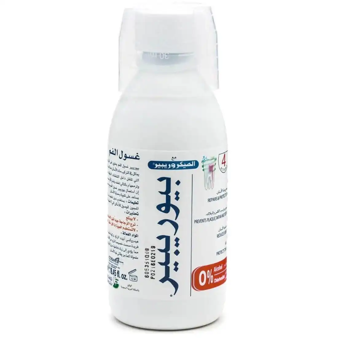 · غسول الفم بايوربير مع ميكرباير يعمل على طول خط اللثة ويقلل من تراكم البلاك. عند استخدامه بانتظام فانه يمنع تكوين الجير الجديد