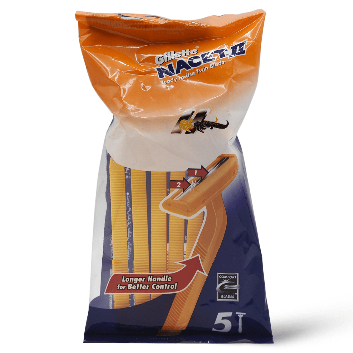 تتميز ماكينة حلاقة جيليت ناسيت 2 بشفرتين مانعة للاحتكاك لحلاقة سهلة وناعمة، كما تم تصميمها للوصول السلس إلى الأماكن الصعبة، وتتميز الشفرة بمقبض مقاوم للانزلاق.