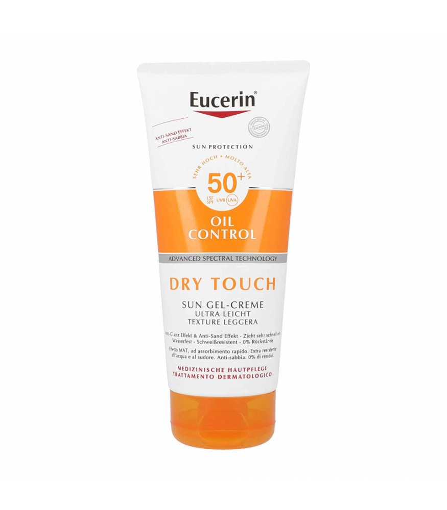 كريم جل الحماية من الشمس Eucerin Sensitive Protect Dry Touch Sun Gel-Cream SPF 50+ هو واقي شمس للوجه فائق الخفه مع عامل حماية عالي من أشعة الشمس ، و يوفر حماية كاملة و فعالة لجميع أنواع البشرة. و ايضًا جل كريم واقي شمس يوفر حماية غير مرئية من الضوء و يتحكم في زيوت البشره ، سهل التطبيق ، وسريع الامتصاص. مقترنًا بمزيجها المتقدم من المرشحات واسعة الطيف ضد UVB و UVA و IV-A و Visible ، فإنه يحتوي أيضًا على مكونات نشطة محددة للمساعدة في منع التصوير الضوئي. تأثير مضاد للرمال حيث يمنع الرمال من الالتصاق بالجلد..