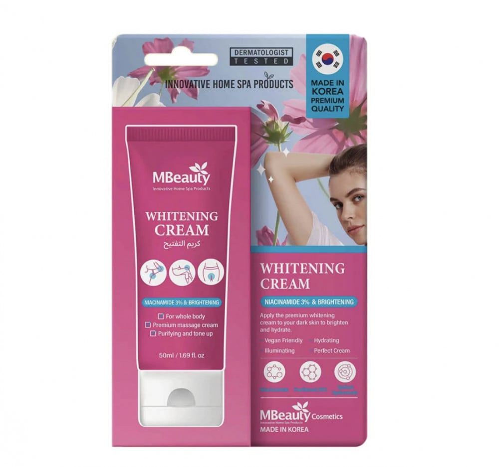 تم تصميم كريم التبييض من M Beauty Cosmetics لمعالجة المخاوف المتعلقة بتصبغ الجلد والبقع الداكنة. يحتوي على مكونات تعمل على تقليل ظهور البقع الداكنة وتفاوت لون البشرة والعيوب. يستخدم هذا الكريم للحصول على بشرة أكثر إشراقًا وتجانسًا. يحتوي كريم التفتيح الممتاز على نياسيناميد (3) وغلوتاثيون وتوت البحر وفيتامين B5، وتساعد هذه المكونات في تفتيح البقع الداكنة على الركبتين والمرفقين ومنطقة البكيني وتحت الإبط. استخدمي المنتج يوميا للحصول على بشرة متفتحة ورطبة.