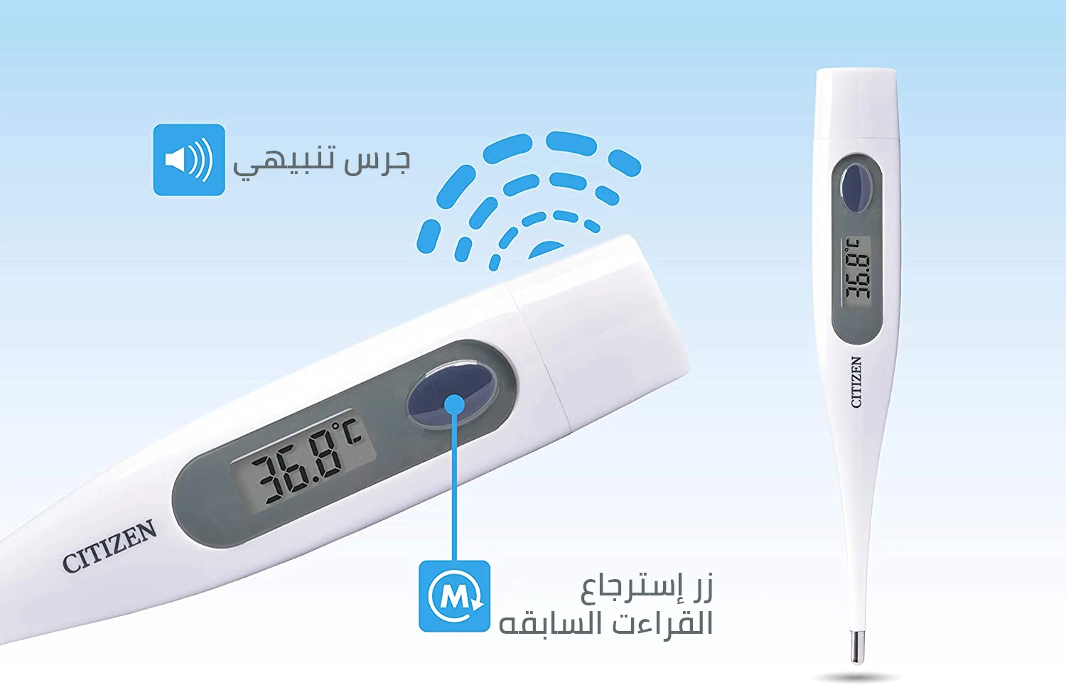 ميزان الحرارة الرقمي للاذن من ماركة ستيزين هو ميزان حرارة الكتروني طبي يستخدم حساس يعمل بالاشعة فوق الحمراء لقياس درجة حرارة جسم الاشخاص في اي عمر كانوا من خلال القناة السمعية في المنزل.