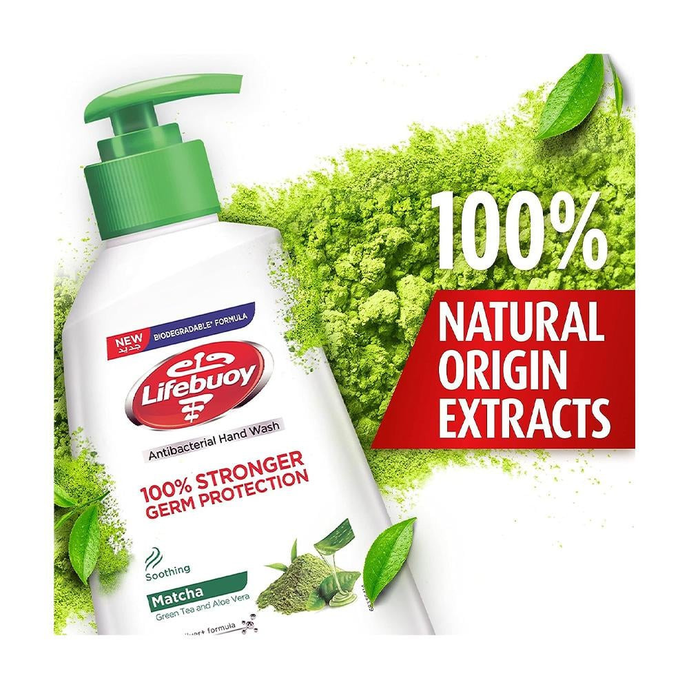 غسول اليدين من لايف بوي بشاي الماتشا الأخضر للحماية من الجراثيم مدعوم بتركيبة اكتيف سيلفر - التي تمنحك حماية من الجراثيم أفضل 10 مرات من أنواع الصابون الأخرى بشاي الماتشا الأخضر والألوفيرا وهي مضادات طبيعية للأكسدة والبكتيريا يساعد في وقايتك أنت وأطفالك من الإصابة بالجراثيم معبأ في زجاجة ضخ مريحة وصحية للاستخدام لجميع أفراد العائلة.