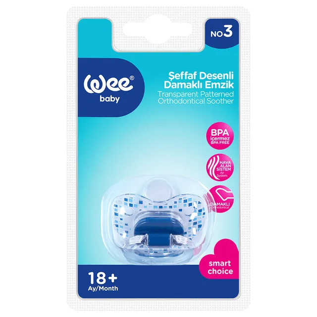 يتوفر لهاية تقويم الأسنان المزخرفة للجسم من Wee Baby في العديد من الأنماط العصرية وثلاثة أحجام تبقى الحلمة التقويمية ناعمة وتحتفظ بشكلها بفضل نظام وي إير مما يساعد لسان الطفل على البقاء في وضعه الطبيعي، مما يعزز النمو الصحي للحنك ونمو الأسنان يمنع الدرع تهيج المنطقة المحيطة بفم الطفل مما يخلق تجربة مريحة.