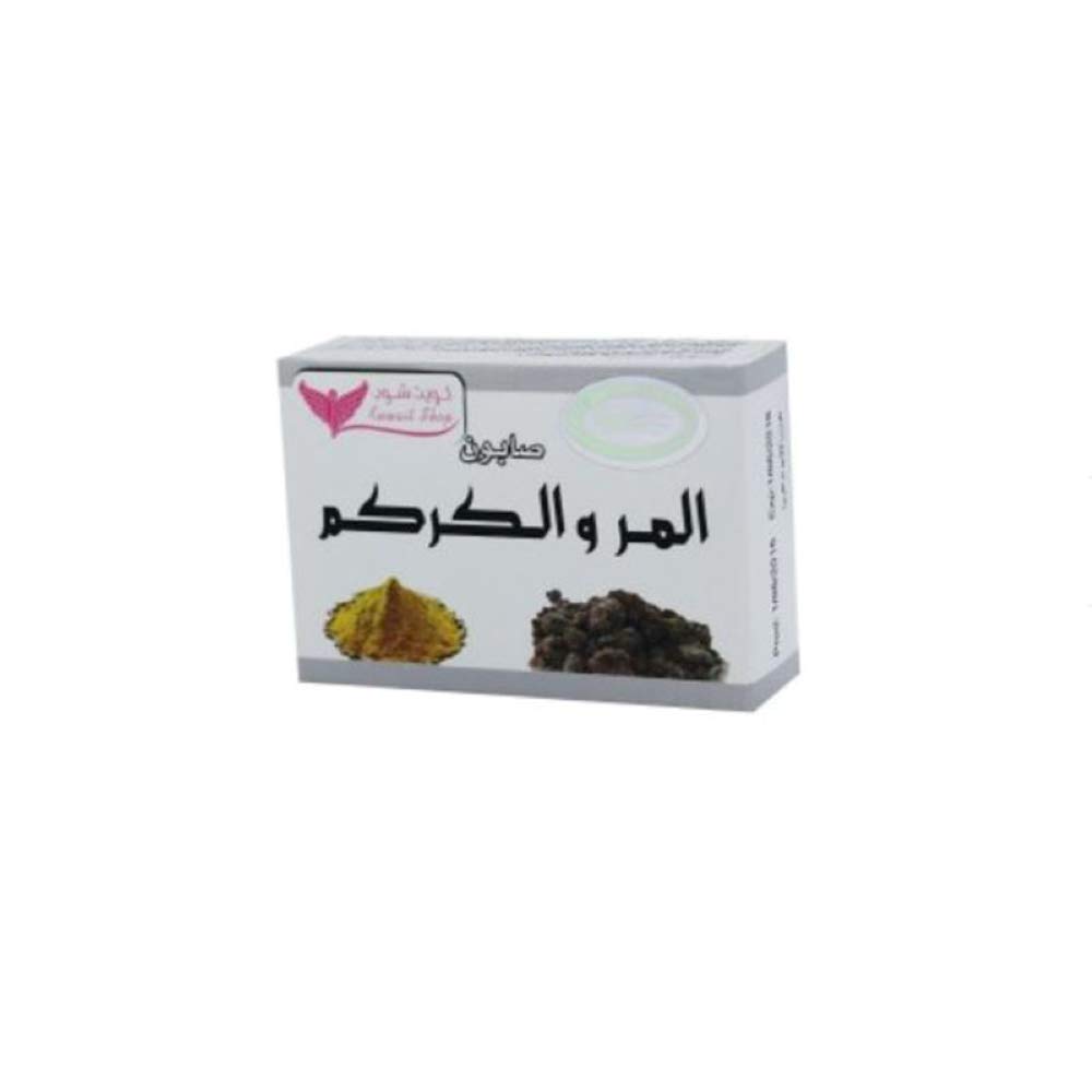 صابونة المر والكركم تزيل الجلد الميت والنمش من بشرة الوجه والجسم.صابون المر والكركم يكافح التجاعيد ويعمل على شد الجلد لتصبح البشرة اكثر شبابا