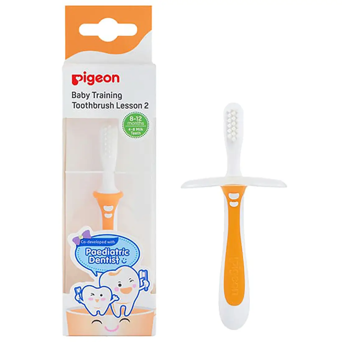 تُستخدم فرشاة أسنان (Pigeon) التدريبية (Lesson2) لتعليم الأطفال كيفية تحريك الفرشاة عند تنظيف الأسنان.
