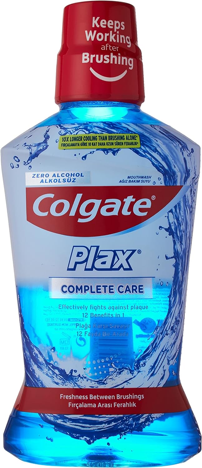 يزيل غسول الفم بلاكس كومبليت كير من كولجيت 99.9% من الجراثيم وبالتالي يوفر حماية لمدة 12 ساعة ضد الجير والجراثيم. يحتوي غسول الفم هذا على تركيبة خالية من الكحول. يساعد غسول الفم بلاكس من كولجيت على التخلص من رائحة الفم الكريهة، بفضل نكهة النعناع اللاذعة للحفاظ على شعورك بالانتعاش. استخدم غسول الفم بلاكس من كولجيت مرتين في اليوم بعد تنظيف الفم بالفرشاة للحصول على فم أكثر نظافة وانتعاشًا وصحة. استمتع بانتعاش يدوم طويلًا مع غسول الفم الرائع هذا وبدون حروق.