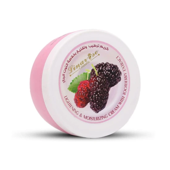 لينا روز كريم ترطيب وتفتيح البشرة بخلاصة التوت البري يخلصك من كافة المشاكل التي تواجهها المرأة. فهو يحتوي على التوت البري الذي يعتبر من العناصر الطبيعية الأساسية التي تعمل على تغذية البشرة وإعادة نضارتها، كذلك يعتبر التوت البري رائع لتجنب التجاعيد وتحفيز إنتاج الكولاجين، فوائد كريم التوت البري تشمل ترطيب البشرة ومعالجة الجفاف، بالإضافة الى تهدئة البشرة الحساسة وتخفيف إحمرارها. وبما أن التوت غني بفيتامين A و D، فهما عاملان أساسيان يساعدان على منع جفاف البشرة. هذا الكريم يساعد على ترطيب البشرة وجعلها أكثر نعومة وطراوة ، كذلك يعمل على تهدئتها.