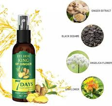 تحسين جودة الشعر يمكن لزيت مصل نمو الشعر بالزنجبيل لمدة 7 أيام أن يغذي جذور الشعر بعمق ويصلح وينعم ويقوي الشعر الجاف والهش والمجعد وينمو الشعر اللامع والجميل. الاستخدام استخدميه بعد تجفيف الشعر، خذي كمية مناسبة وضعيه على فروة الرأس، ودلكي لمدة 2-3 دقائق، استخدميه 2-3 مرات في اليوم.