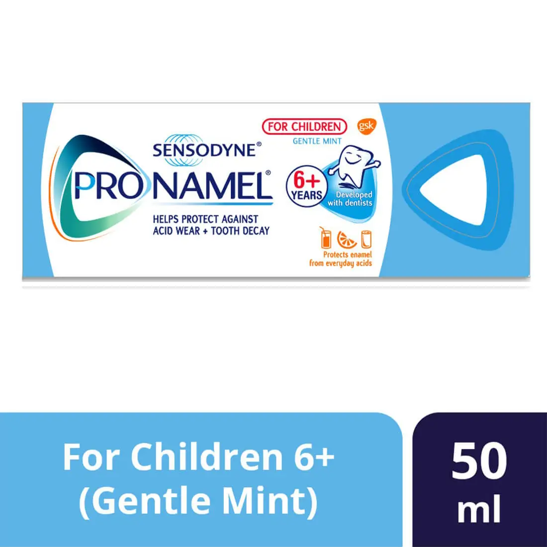 معجون أسنان سنسوداين واقي المينا للأطفال هو معجون أسنان بالفلورايد للاستعمال اليومي، تم تطويره بالتعاون مع أطباء الأسنان للمساعدة في حماية أسنان الأطفال من تأثيرات الأغذية والمشروبات الحمضية.
