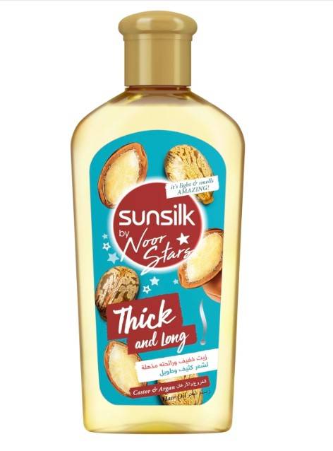 تم تصميم زيت الشعر صانسيلك نور ستارز بالخروع والأرغان خصيصًا لمساعدة شعرك على أن يبدو أكثر سمكًا وأطول.