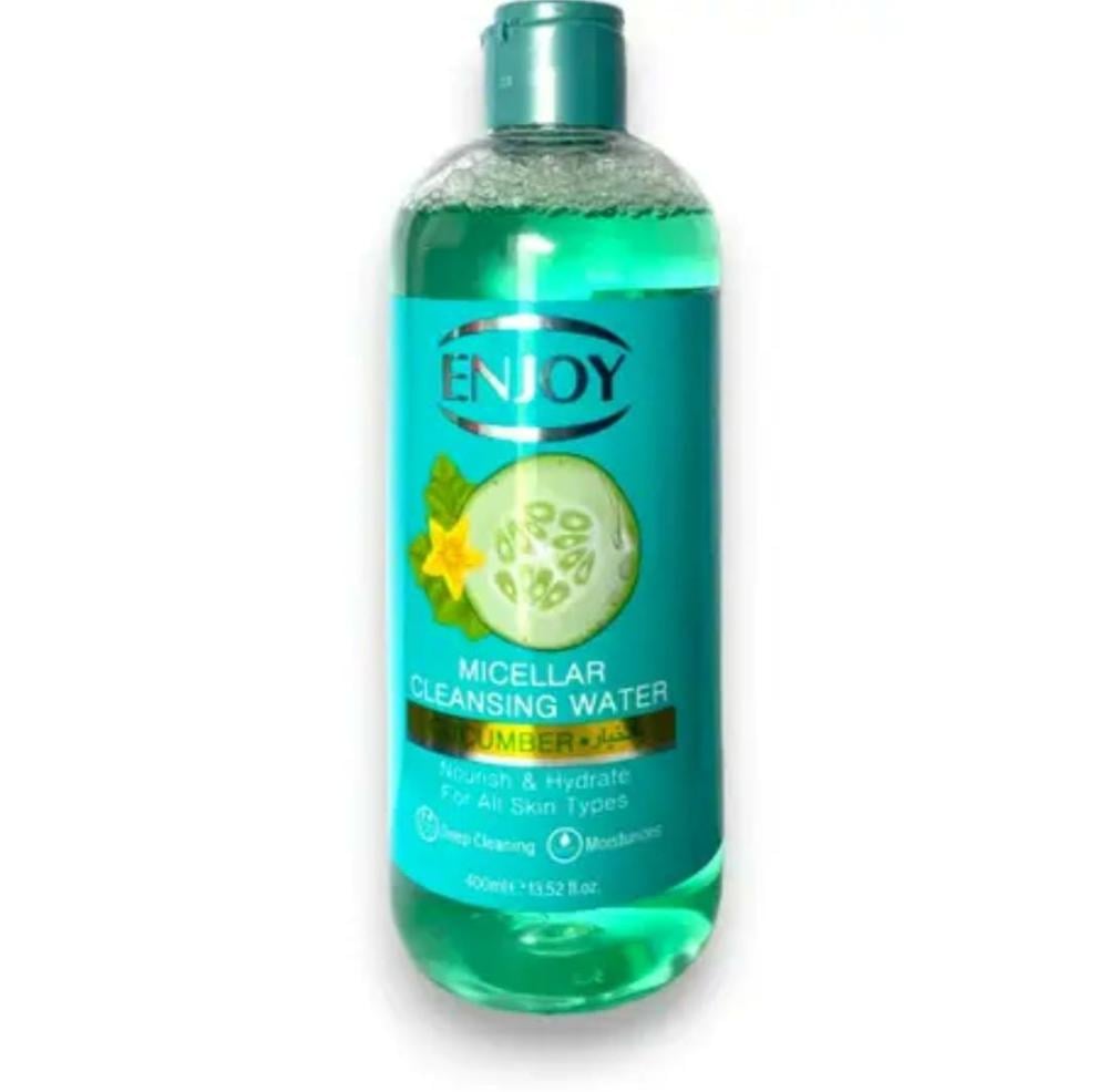 إنجوي ماء ميسلار مزيل المكياج ومنظف البشرة بالخيار _ 400 مل Enjoy. يحافظ على رطوبة الجلد بشكل دائم، ويقلل من الالتهابات البكتيرية التي تصيب الجلد. يبيض البشرة، ويمنحها المزيد من اللمعان والنضارة، ويقلل من البقع الداكنة الموجودة على الجلد.