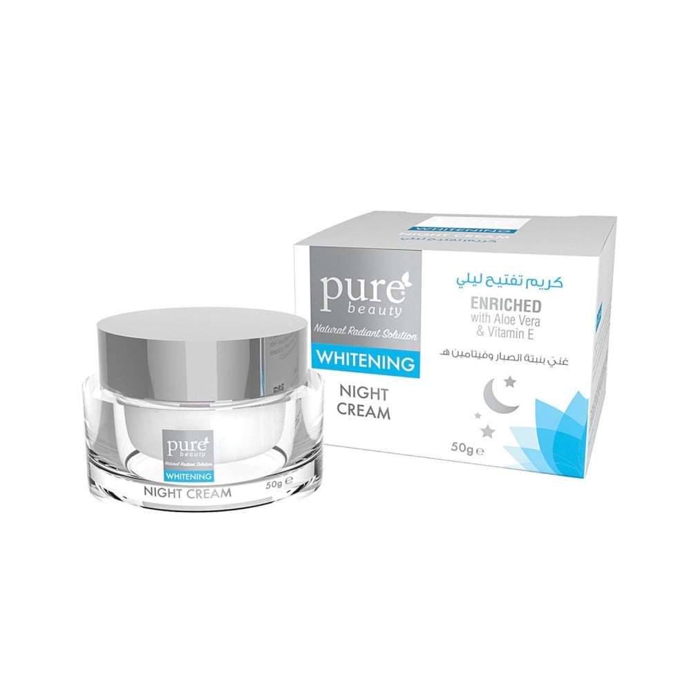 يعد كريم بيور بيوتي تفتيح ليلي 50 جرام حلا مثالياً لإضفاء الإشراقة والتألق على بشرتك. يتميز هذا الكريم بتفتيح البشرة الداكنة والتلون الناتج عن أشعة الشمس، وذلك بفضل الخلاصات الطبيعية المستخرجة من نبتة الصبار. يحتوي الكريم أيضاً على فيتامين هـ الذي يمنح البشرة الرطوبة اللازمة ويحفز إنتاج الكولاجين في الجلد.