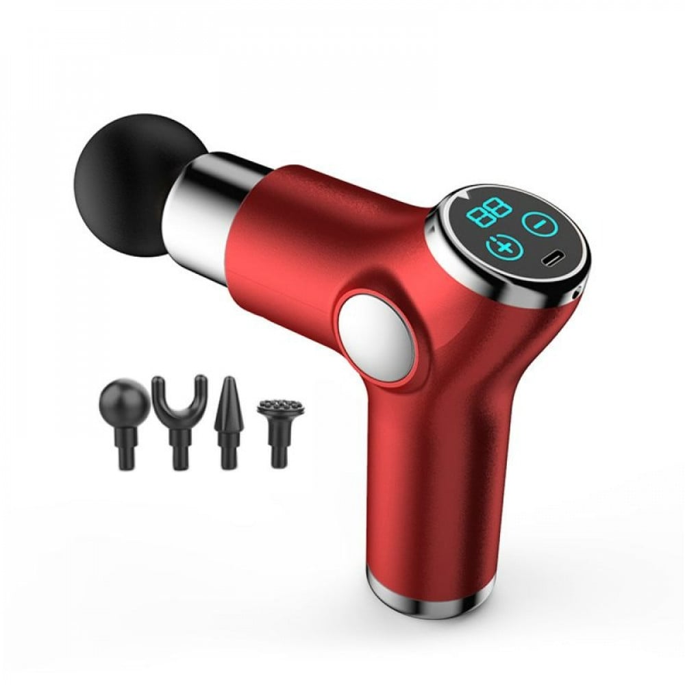 جهاز مساج ذكي باللون الاحمر يستخدم لتدليك الجسم بطريقة فعالة لتخفيف التوتر العضلي وتحسين الدورة الدموية
