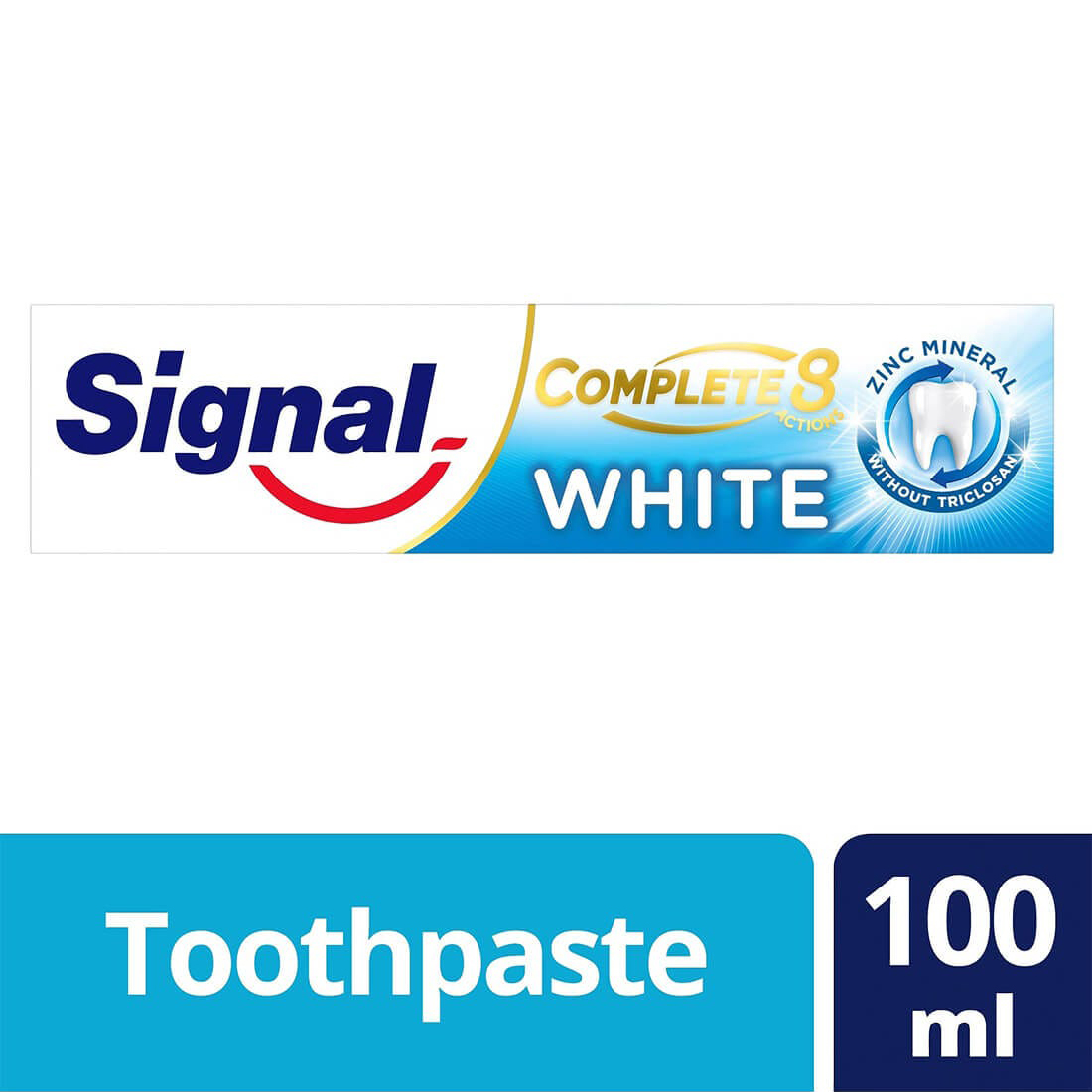 سيجنال المتكامل ٨ يوفر حماية كاملة من بكتيريا الأسنان لمدة طويلة مع ما يمتاز به من قوة الزنك اللطيفة، وهي ضعف الحماية التي يوفرها غيره من المنتجات. تركيبة معجون الأسنان غنية بمعدن الزنك، المعروف بقوته المضادة للبكتيريا. حيث تمتصه اللثة أثناء تفريش الأسنان ويتم إطلاقه تدريجيًا لحماية حتى 18 ساعة. ثبت أنه يوفر 8 فوائد للحماية الكاملة*. تحتوي هذه التركيبة على سيترات البوتاسيوم لتخفيف حساسية الأسنان بسرعة