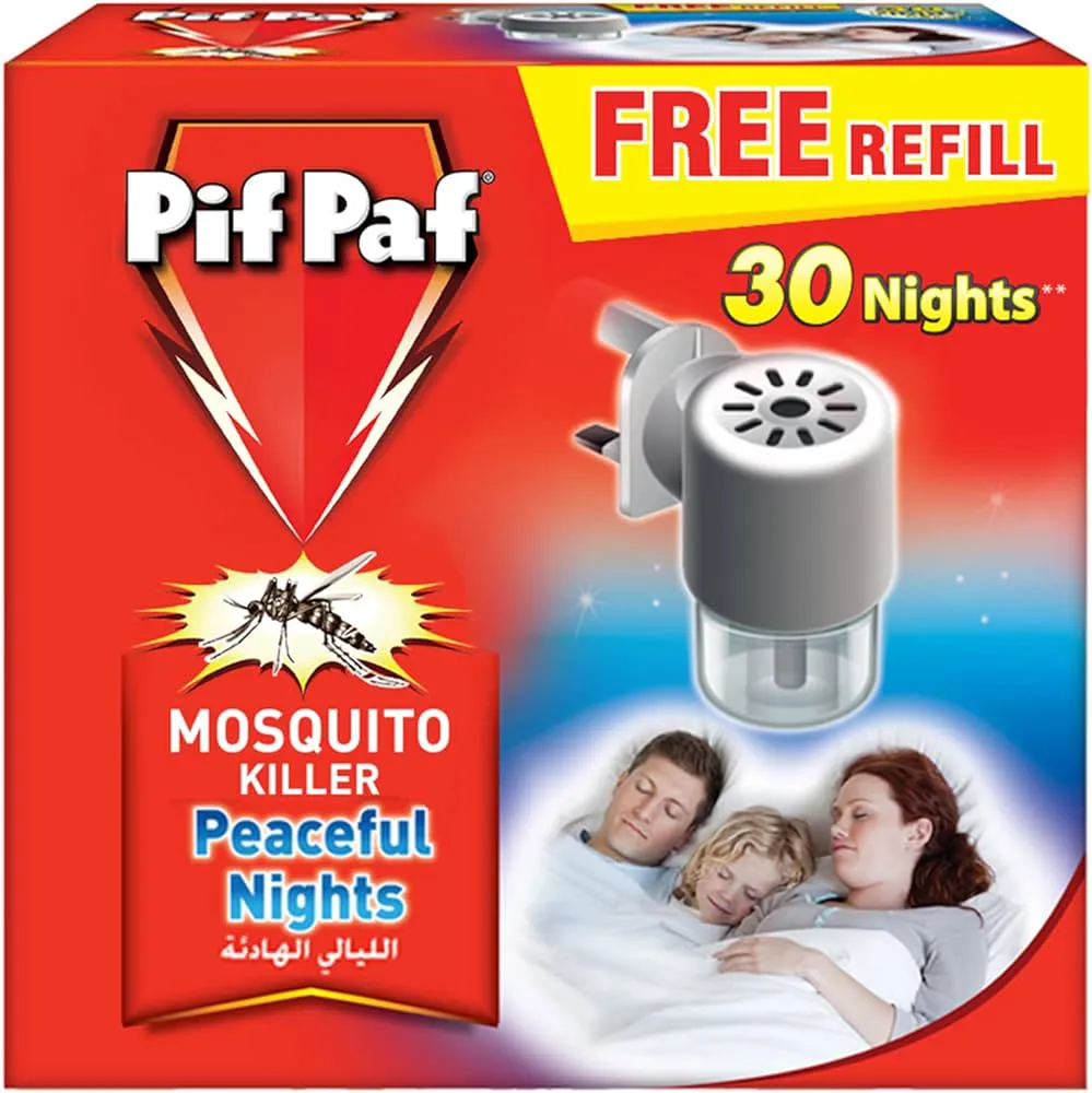 ياتي طارد البعوض الكهربائي من بف باف باور جارد على شكل مبخر سائل سهل الاستخدام يوفر حماية كاملة من البعوض المسبب للحمى.
