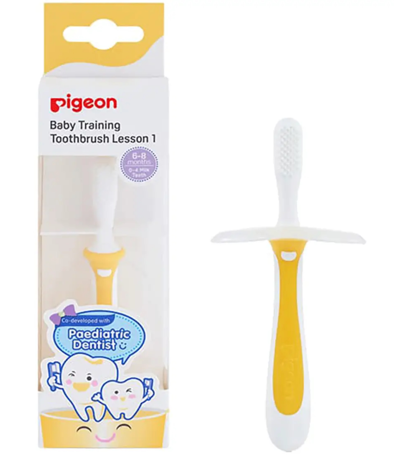 فرشاة أسنان التدريب للأطفال من (Pigeon) هذه واحدة من أفضل ملحقات العناية بالفم للأطفال وتأتي ضمن مجموعة Lesson 1-2-3 مناسبة للأطفال بين 6 إلى 8 أشهر