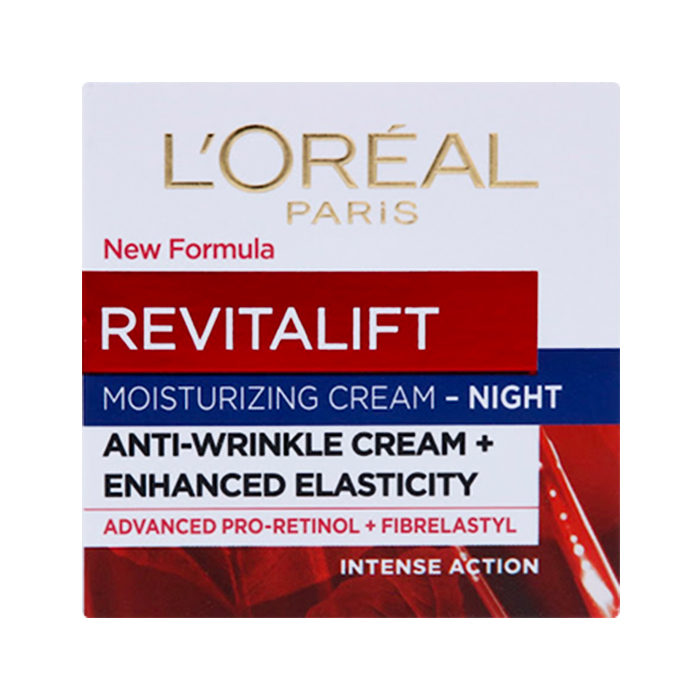 الوصف لوريال باريس ريفايتاليفت كريم الليل المرطب يقاوم التجاعيد و يعزز مرونة البشرة يحتوي على: البرو-ريتينول المطور: عنصر فعال مستوحى من خبراء الجلد، ينعم سطح البشرة. الفيبريلاستيل: مركب لإعادة تعزيز حيوية البشرة و ومرونتها.
