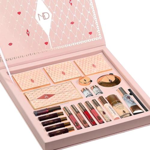 يتضمن البوكس أحمر شفاه بألوان متنوعة، ظلال عيون بألوان مختلفة،