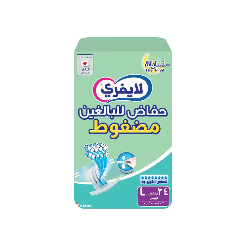 مزودة بحزام خصر مرن سهل التمدد وسهل الضبط حسب المقاس يضمن قدرًا كبيرًا جدا من الراحة. امتصاص فائق للسوائل ويمنع التسرب بشكل جيد ليسهل استخدامها لوقت اطول بدون تسريب ولراحة أكبر. تحتوي علي فتحات مرنة للقدمين لتناسب جميع حالات الوقوف أو الاستلقاء أو الجلوس لراحة أكثر.