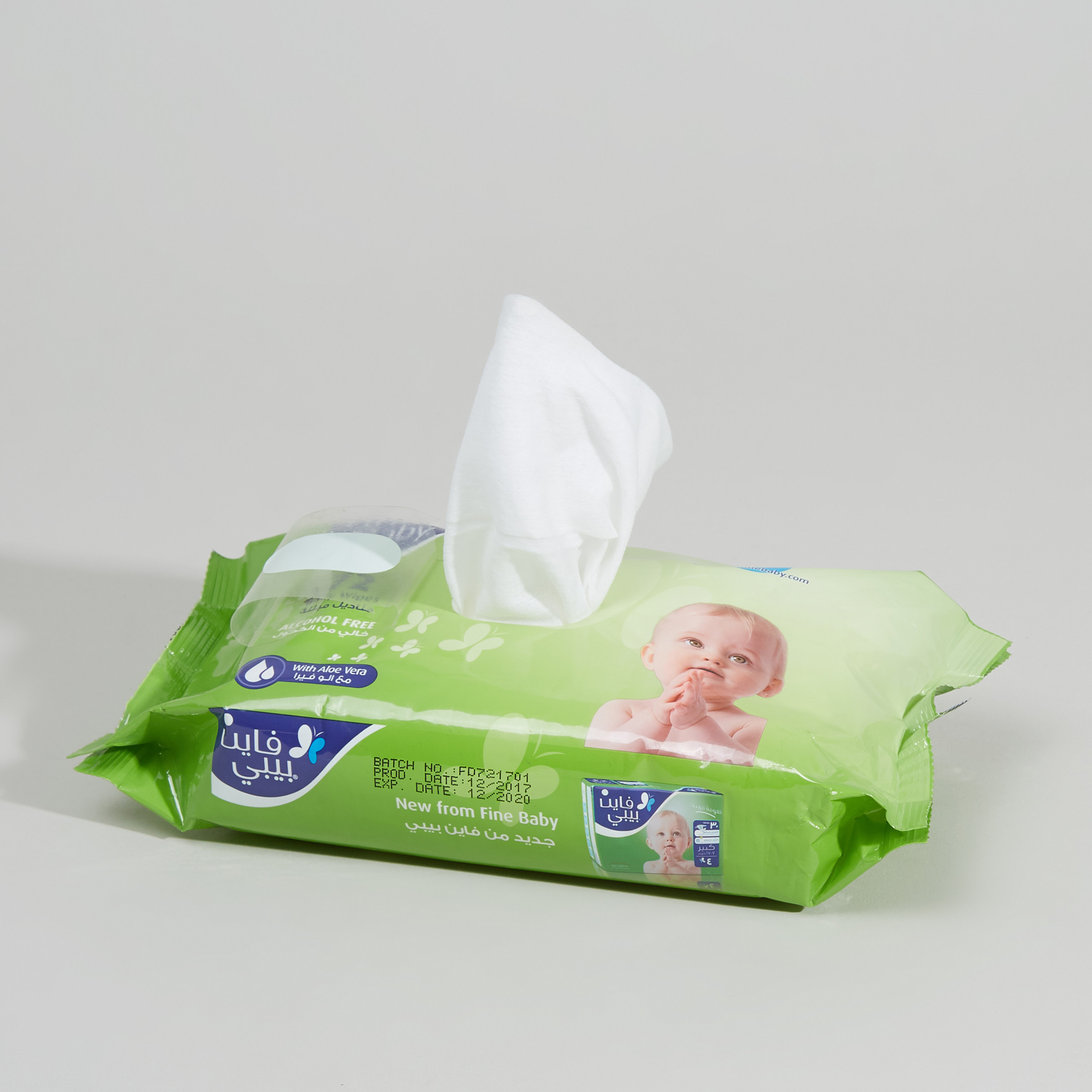 مناديل فاين المبللة للاطفال بيبي وايبس 72 منديل بفضل حجمها الكبير فاين بيبي المبللة توفر تنظيفًا سهلًا لكامل الجسم ، مما يضمن بمسحة واحدة فقط تنظيفًا شاملاً. توفر ترطيبًا طبيعيًا ومهدئًا لان هذه المناديل المبللة غنية بخلاصة البابونج والصبار، مما يجعلها مثالية للبشرة الحساسة وتتركها ناعمة ومغذية.