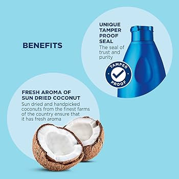 عززي صحة وتالق شعرك وبشرتك الطبيعية باستخدام زيت جوز هند نقي مرخص من هيئة سلامة الاغذية والمعايير في الهند زيت جوز هند النقي 100% مصنوع من اجود انواع جوز الهند المجفف بالشمس والذي تم انتقائه يدويًا زيت جوز الهند النقي والصالح للاكل 100٪ له نضارة طويلة الامد ورائحة جوز الهند ويتميز بانه متعدد الاغراض ويمكن استخدامه لوظائف مختلفة مثل الطهي والعناية بالشعر والعناية بالبشرة وقد تم تصميم الزجاجة بمواصفات تسمح لرائحة الزيت بالبقاء لفترة طويلة