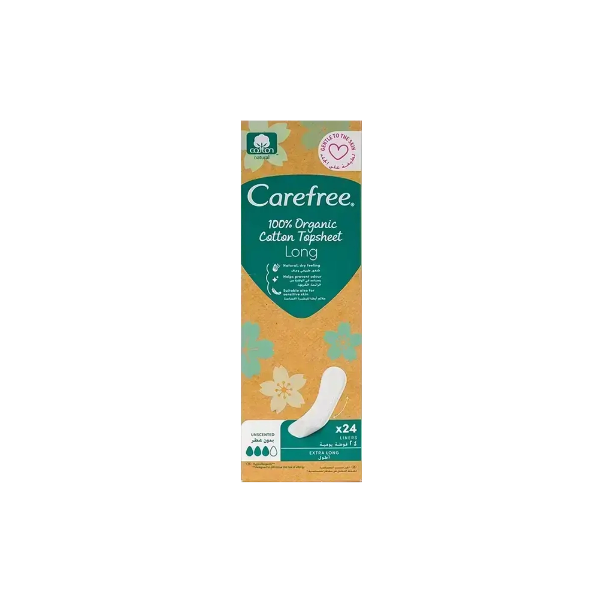 - فوط كير فري اليومية هي فوط بحجم طويل مصنوعة من القطن فائق النعومة لتوفر راحة عالية للجسم. - تتميز بنسيج قطني يسمح للجلد بالتنفس مما يقلل من تعرض الجلد للاحمرار أو الطفح الجلدي. - يناسب هذا النسيج البشرة الحساسة فهو مصنوع من القطن العضوي بنسبة 100% كما انها غير معطرة.