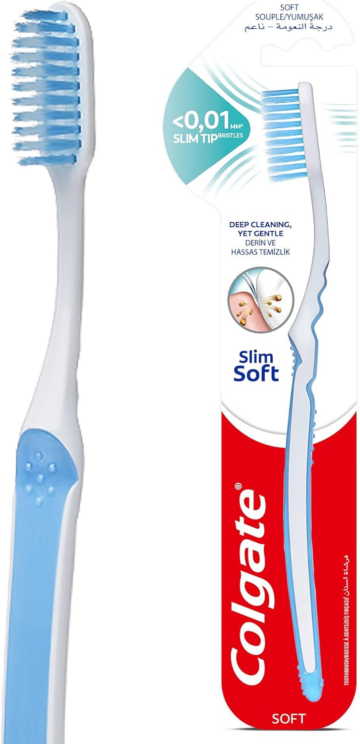 تنظيف عميق، لكنها لطيفة + شعيرات فحميةتم تصميم شعيرات رأس أنحف بمقدار 17 مرة خصيصًا لإزالة الطعام والبلاك من: على طول خط اللثة، فجوات ضيقة بين الأسنان فرشاة أسنان كولجيت Slim Soft™ مع شعيرات غنية بالفحم تساعد على إزالة البلاك.