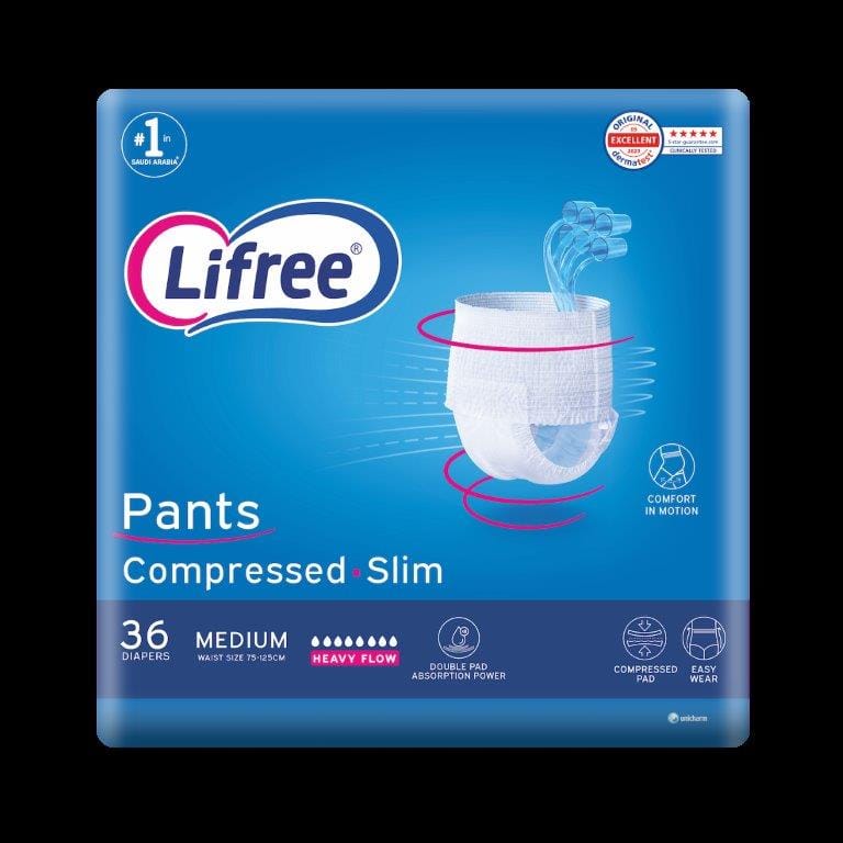 مزودة بحزام خصر مرن سهل التمدد وسهل الضبط حسب المقاس يضمن قدرًا كبيرًا جدا من الراحة. امتصاص فائق للسوائل ويمنع التسرب بشكل جيد ليسهل استخدامها لوقت اطول بدون تسريب ولراحة أكبر. تحتوي علي فتحات مرنة للقدمين لتناسب جميع حالات الوقوف أو الاستلقاء أو الجلوس لراحة أكثر.