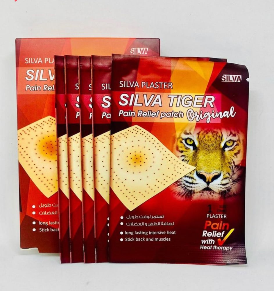 سيلفا بلاستر لصقات الظهر سيلفا تايغر اوريجنال 5 قطع (حجم 9*6) هي لصقات مسكنة للالم طويلة المفعول تعمل على توفير الحرارة وتوضع على الظهر أو أي منطقة أخرى مرادة بوضعها على العضلات وغيرها وتعطي إحساساً بالراحة.