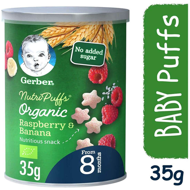 • علبة طعام عضوي للأطفال جربر بتوت العليق والموز بوزن 35 جرام للأطفال من عمر 8 أشهر